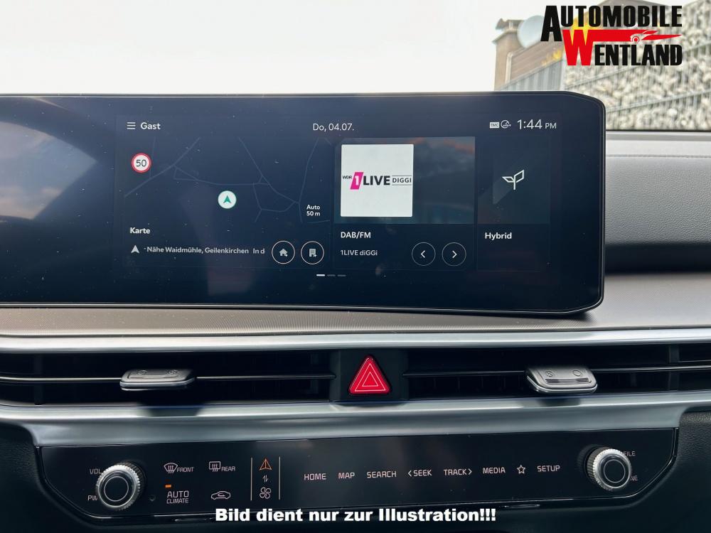 • Navigationssystem 12,5 Zoll, DAB, Rückfahrkamera, Mediaplayer, USB-Anschluss, Lautsprecher (6), Kia Connect Dienst, Android Auto und Apple CarPlay vorhanden