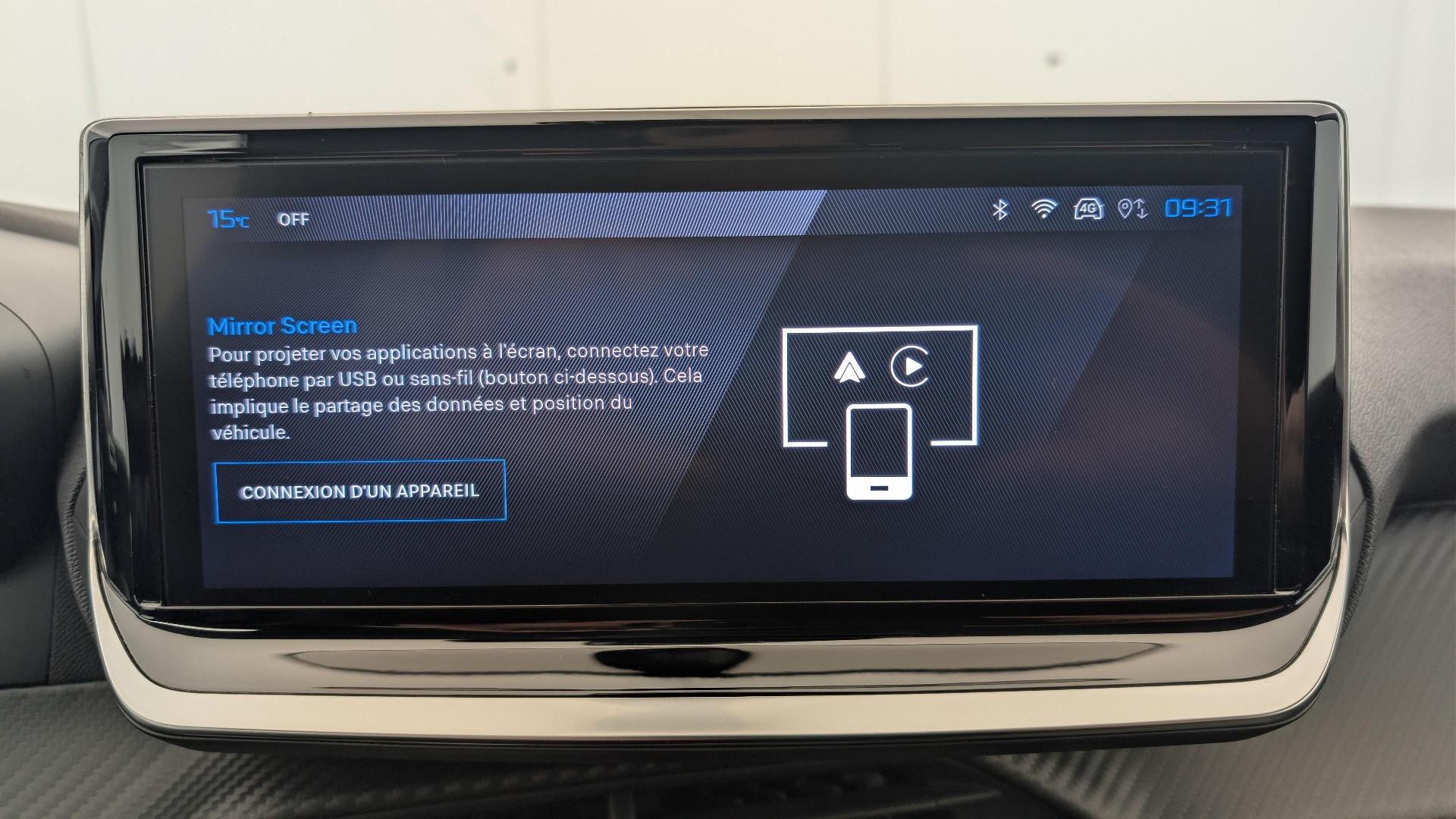 • Peugeot i-Connect: DAB-Radio mit personalisierbarem 10"-HD-Farb-Touchscreen, Bluetooth, drahtloser Mirror Screen (Apple CarPlay/Android Auto), Wifi, 1 USB Typ C-Anschluss (Data+charge) und 1 USB Typ C-Anschluss (Charge) in der Vorderkonsole.
