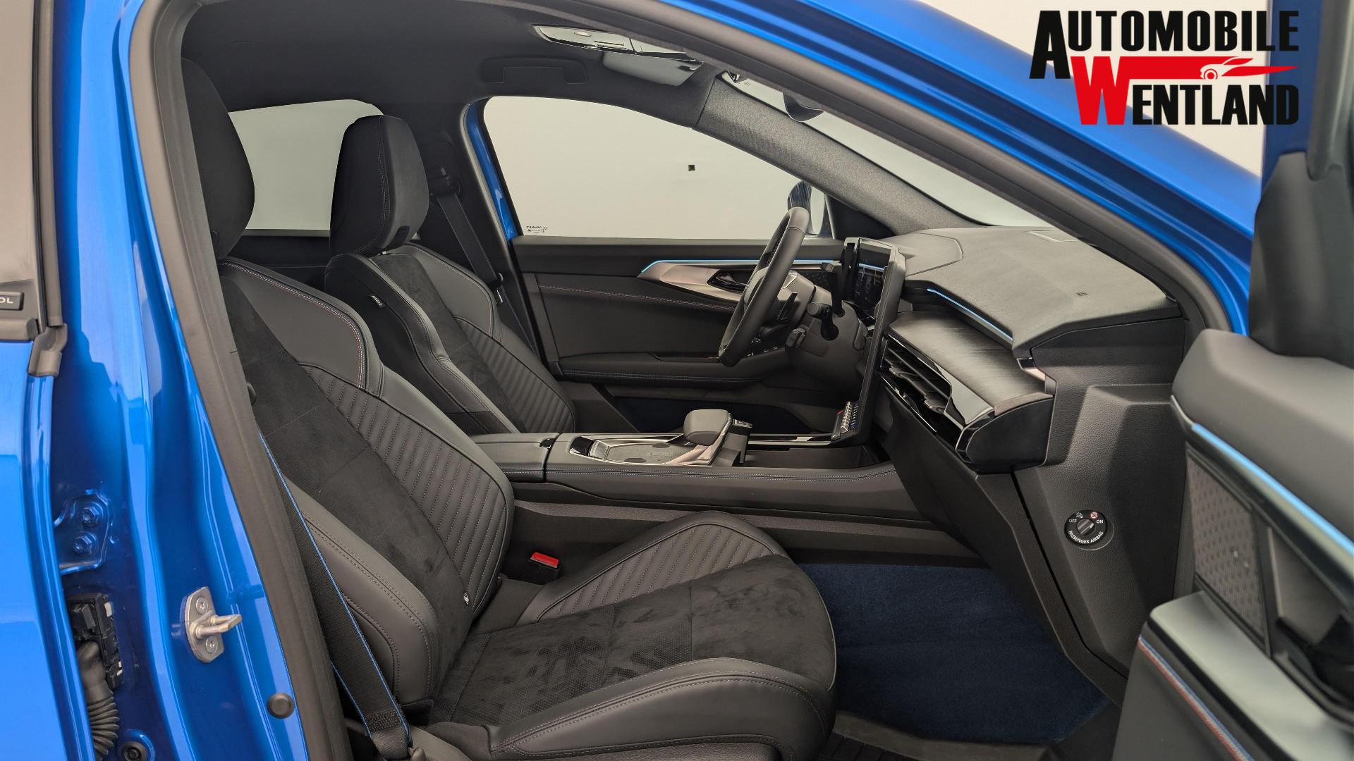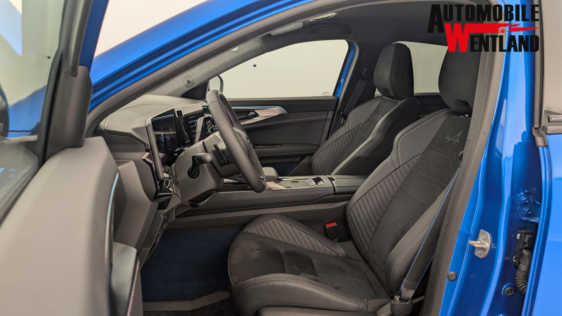 • Alcantara-Mischpolsterung mit blauen Nahten und leuchtendem Alpine-Logo